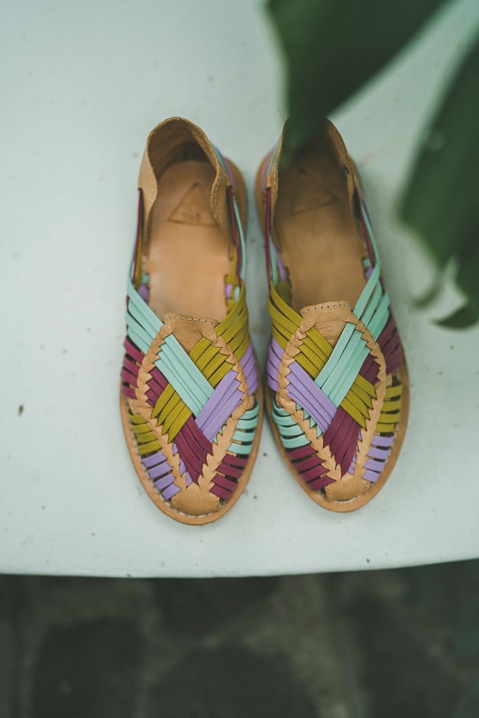 A vibrant celebration of heritage and artistry, the KORA Pastel Guaraches bring traditional craftsmanship into a modern color palette. Handmade in Nicaragua from 100% genuine leather, these slip-ons feature a handwoven upper in shades of mint, lavender, olive, and wine, creating a striking pattern that is as comfortable as it is eye-catching.